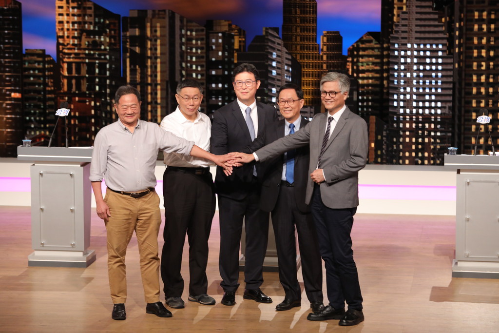 ▲李錫錕、柯文哲、姚文智、丁守中、吳蕚洋出席台北市長辯論會。(圖/公視提供)