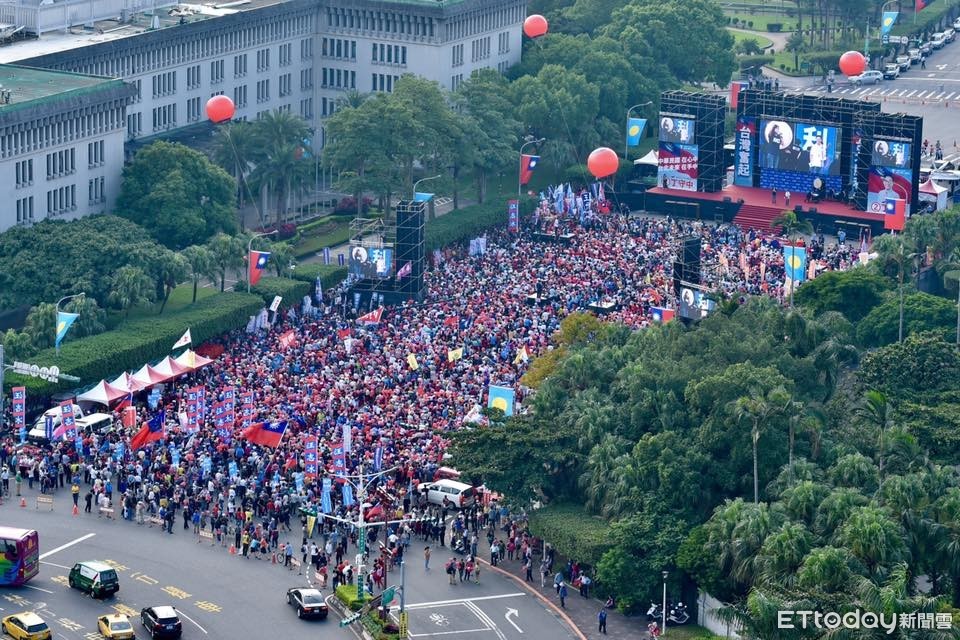 選戰倒數13天,國民黨台北市候選人丁守中「台北②勝利 台灣奮起 繁榮為台北 守中挺百業」造勢大會11日下午在總統府前凱道舉行,包括前總統馬英九、國民黨主席吳敦義、新北市長朱立倫都到場;據警方統計,現場估有一萬多人。八百壯士捍衛中華協會理事長吳斯懷表示帶領現場萬人齊唱韓國瑜主題曲「夜襲」,現場氣氛在一開始就達到最高點。