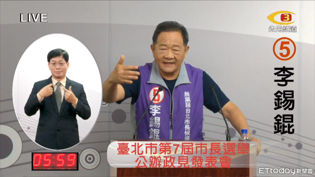 ▲第7屆市長選舉候選人公辦政見發表會,市長候選人李錫錕政見發表。(圖/翻攝 臺北市選舉委員會)