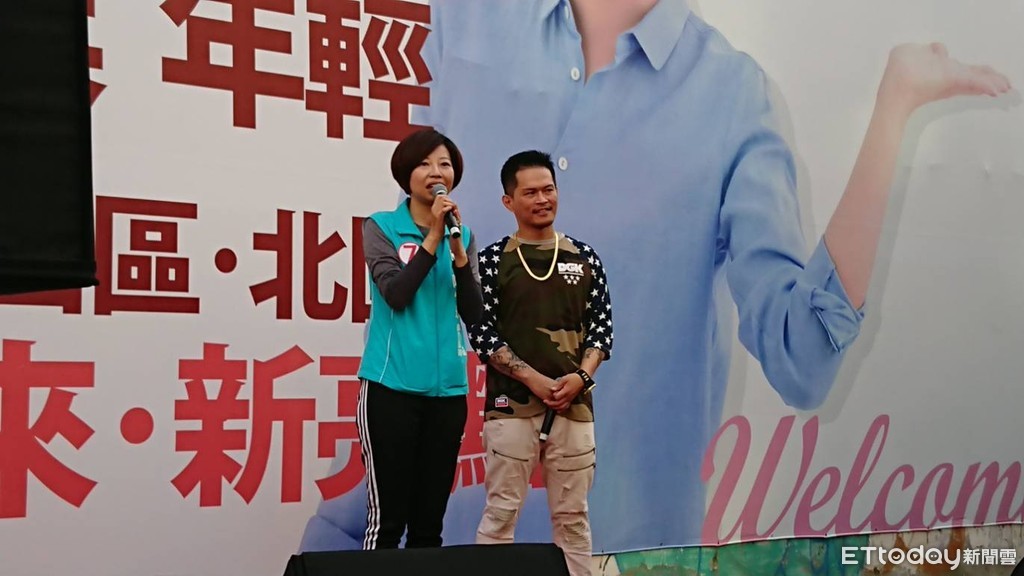 ▲台南市議員候選人7號陳怡珍,邀請嘻哈天王歌手大支合作,在中西區競選總部舉辦年輕「7」步走嘻哈音樂會。(圖/記者林悅翻攝)