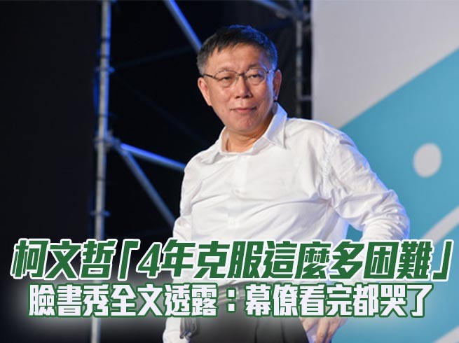 2018九合一選戰進入肉搏戰階段,台北市長柯文哲10日在市府路封街舉辦大型造勢活動,由於現場湧入大量支持者們,讓他光是穿越短短180公尺的路,就花了20多分鐘。柯文哲12日在臉書重貼演講全文和影片,並且提到自己身邊的幕僚都在哭,「原來這四年我們克服了這麼多困難、做了這麼多的事。」
