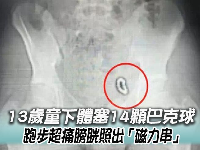 13歲的小浩(化名)表示,前年寒假某一天趁著父母不在,他拿出一串具有超強磁力的「巴克球」玩耍,接著便把小球一顆顆塞進尿道裡,結果小球徹底「消失」,他原本還有點擔心身體可能會不舒服,但除了跑步之外,完全沒有任何不適,便把這件事情藏在心裡,直到現在才突然出現劇痛。