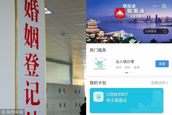 支付寶與江西省政府合作,在江西一網通的辦事小程序中上線了「贛服通」,其中囊括了百餘項政府服務,其中,在「我的卡包」裡有一張紅色的電子結婚證,以及一張藍色的電子離婚證。