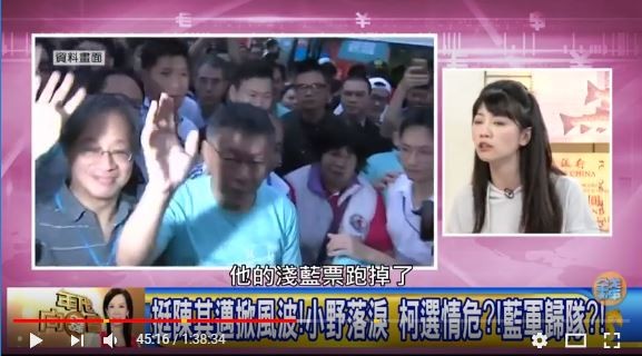年底選戰白熱化,根據最新幾份民調,國民黨台北市長候選人丁守中的支持度略為提高,緊追爭取連任台北市長柯文哲,民進黨台北市議員高嘉瑜12日在政論節目表示,小野事件對柯文哲傷害非常大,淺藍的朋友票都跑了!