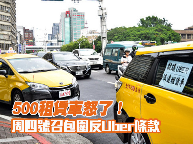 計程車與Uber紛爭不斷,現傳出交通部擬祭出「Uber條款」,將禁止Uber合作租賃車巡迴攬客、車程必須高於1小時等規定,引發租賃業反彈。租賃業怒轟「交通部只關愛計程車」,周四將號召500輛車包圍交通部,要求不要打壓代僱駕駛生計。