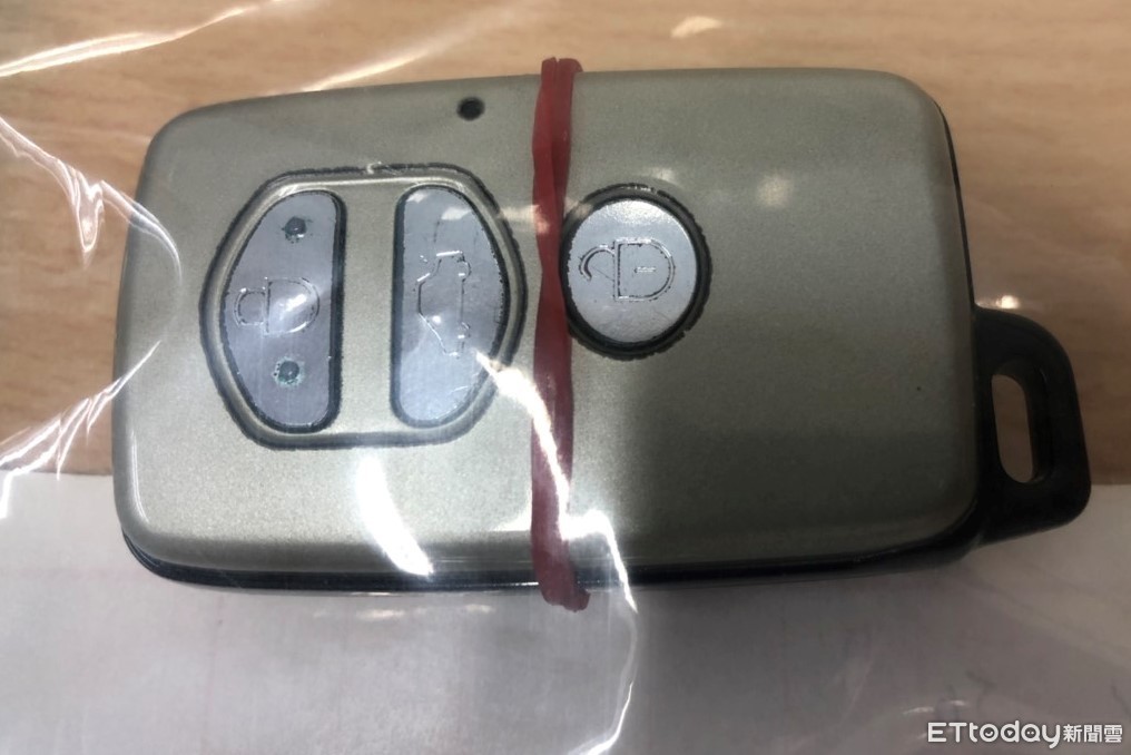 ▲警方從男子身上起獲偽裝成「遙控裝置」的密錄器。(圖/記者邱中岳翻攝)
