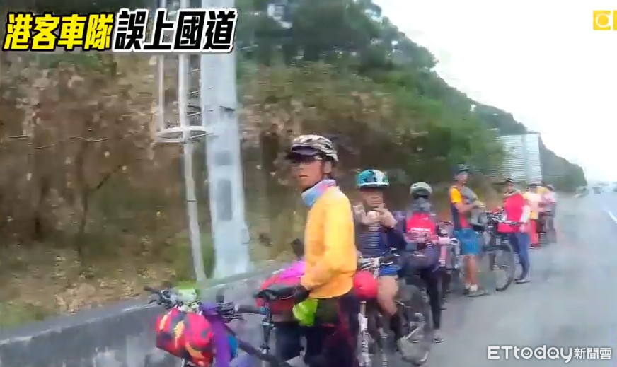 ▲香港一行16人來台「單車環島」,因導航設定錯誤不小心誤闖國道。(圖/翻攝東森新聞)