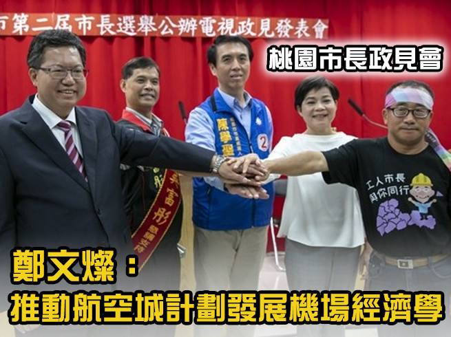 桃園市第二屆市長選舉公辦電視政見發表會,13日上午舉行。爭取連任的市長鄭文燦以感性訴求指出,選對一個市長,可以讓一個城市變得完全不一樣;而他一直都認為能夠為故鄉做事,是人生中的幸福,所以一天當作三天用,跑遍全桃園每一個角落,相信市民的眼睛跟他一樣,都看到桃園無聲的改變,有感的建設。