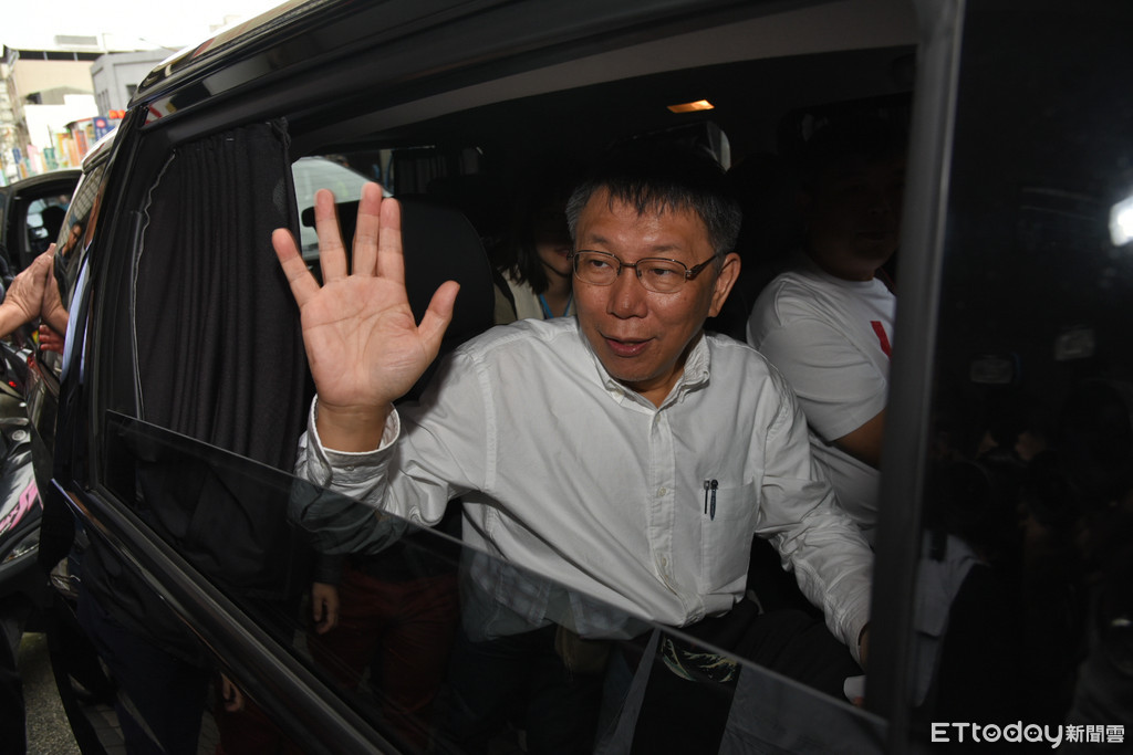 ▲台北市長候選人柯文哲東三水市場掃街。(圖/記者林敬旻攝)