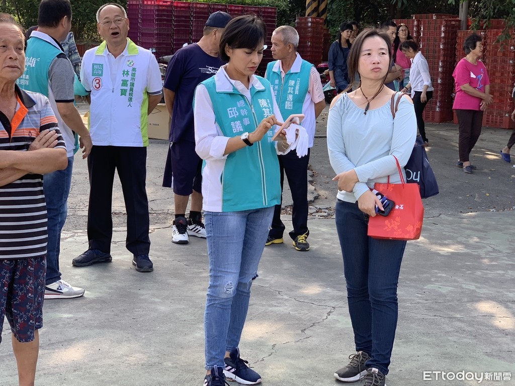 其實許淑華跟邱議瑩之間是因為在國會審查前瞻預算時,許賞邱一巴掌,被封為藍營「神力女超人」,日前因為邱議瑩批評韓國瑜的「陪睡說」再度槓上,許淑華也曾經在臉書踢文批評邱議瑩「沒有最蠢,只有更蠢」,所以這一次記者再度詢問許淑華,邱議瑩只有嘆口氣、不想再說了,隨即快步離開,等待高雄市長民進黨候選人陳其邁來到旗山陪同掃街。