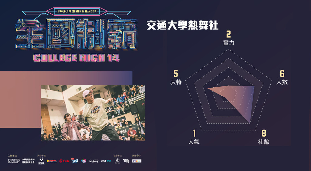 全台各大專院校熱舞社的年度盛事「2018全國制霸街舞經典團賽」即將在12/23台北體育場登場,來自全台將近100所大專院校的舞林高手們將一同爭奪舞林霸主頭銜。快來參加「College High14全國制霸神預測」活動,就有機會抽到PS4等大獎。