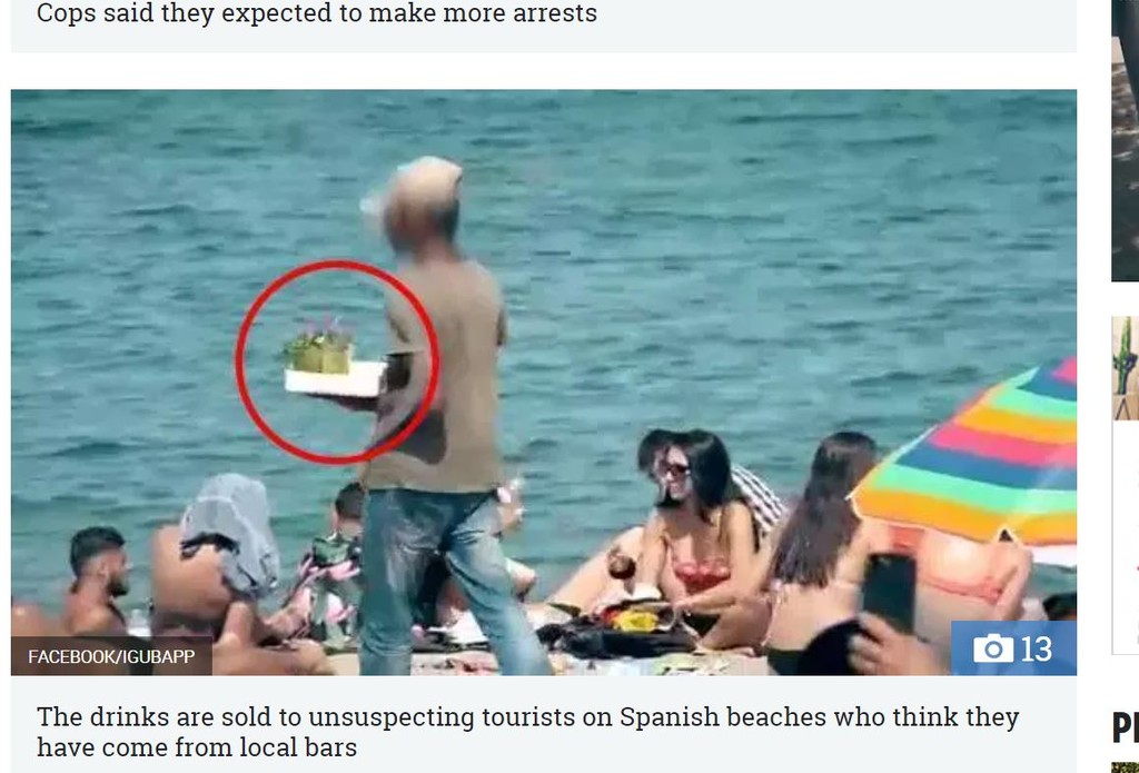 據報導,加泰隆尼亞警方在海灘路邊的地下水道孔蓋跟垃圾箱裡,查獲大量製造莫吉托雞尾酒的材料,裡頭還有裝著綠色不明液體的瓶子、毛巾、吸管、冰塊、玻璃罐等,這些材料上面沾滿了糞水跟汙垢,甚至直接泡在汙水、甚至是糞水裡,相當的噁心。警方依《公共衛生罪》逮捕了十多名在海灘上賣酒的不法攤商。
