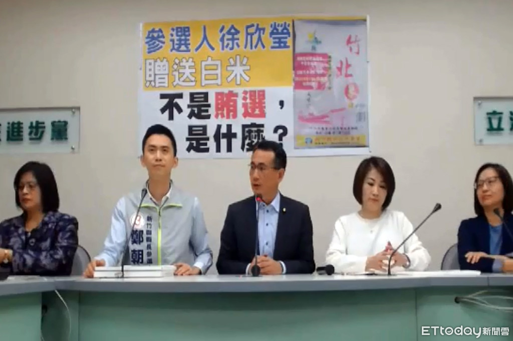 民進黨新竹縣長候選人鄭朝方16日北上赴立法院,指控民國黨候選人徐欣瑩贈送白米賄選,他質疑,徐曾參選過縣議員、立委、副總統,難道不懂賄選的構成要件嗎?呼籲徐陣營出來說清楚、講明白,也要求檢調調查。不過,徐欣瑩本人和白米捐贈者則表示,只是單純善心而已,被扭曲覺得很痛心。