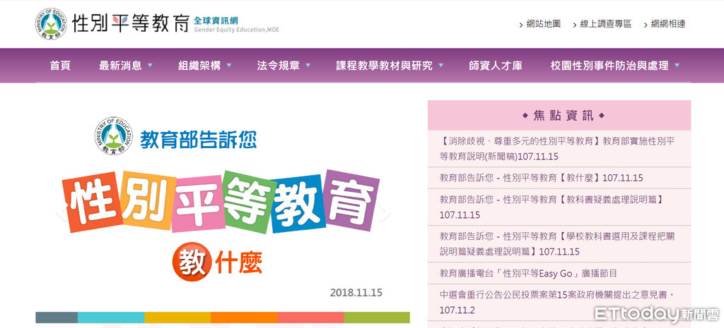 ▲教育部強調,尊重性別差異、消除歧視、尊重多元。(圖/翻攝教育部全球資訊網)
