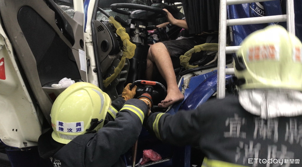 宜蘭縣消防局表示,17日11時許,省道台9線北宜公路61.9公里處發生2輛大貨車對撞車禍,現場1名司機受困, 該局派人車員前往搶救。車禍現場傷者3名(2男、1女),經消防人員搶救後,在12時許,已將受困駕駛順利脫困,傷者3名皆意識清楚,由特種91車及頭城91車送往陽大附醫醫治,3名傷者送醫後已無大礙。
