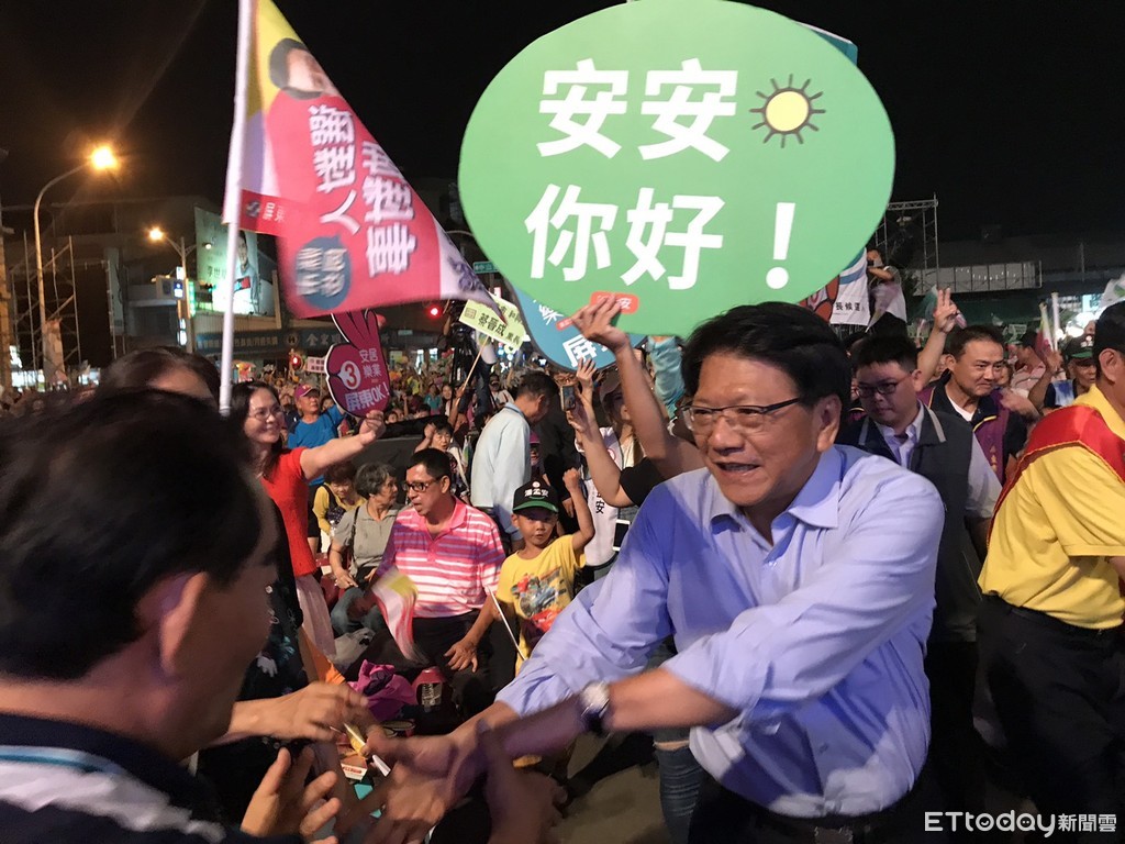 選前黃金周六,民進黨屏東縣長候選人潘孟安清晨5點即到屏東市和生市場拜票,緊接著到北區市場,下午趕往內埔黃昏市場,晚上在總部前廣場舉辦造勢晚會,鐵人般的行程,進行最後衝刺,湧進近萬名支持者,場面熱絡。