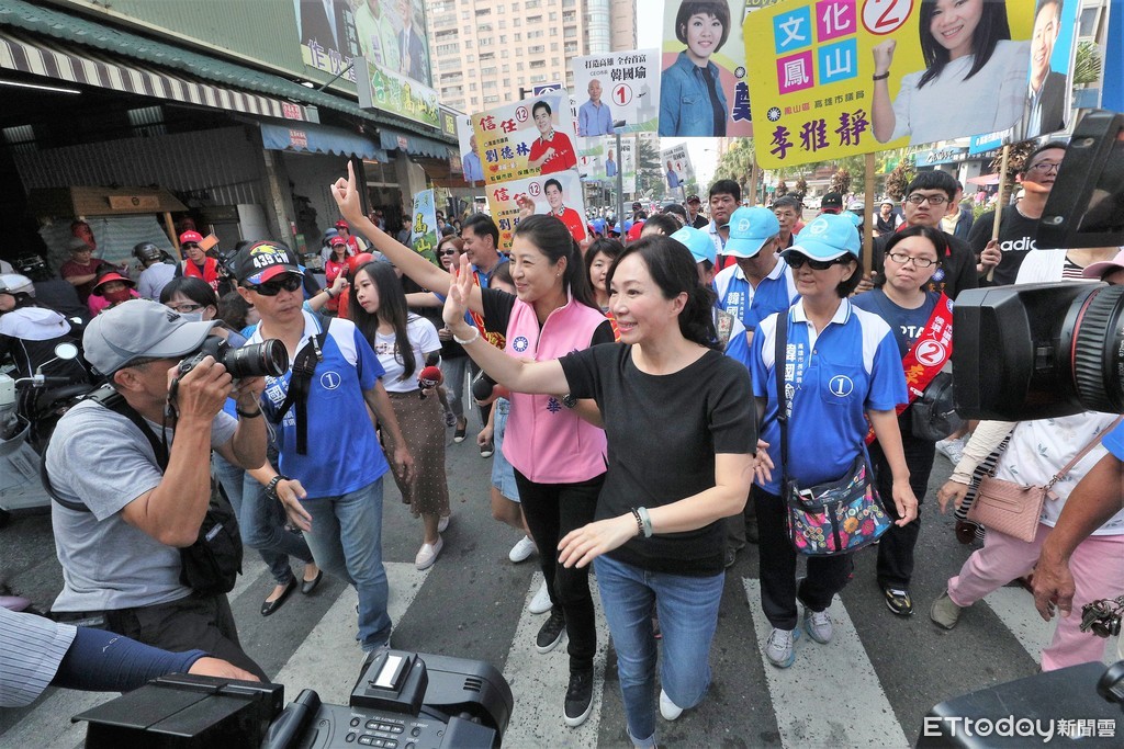 選戰進入最後倒數,國民黨高雄市長候選人韓國瑜的妻子李佳芬18日與立院神力女超人許淑華、國民黨市議員候選人鍾易仲前往鳳山大票倉,上午首站來到傳統市場掃街拜票,李佳芬逐一向攤商和民眾握手,希望能催出選票。有菜販對她喊「愛你一萬年」,也有「菜籃族」要求拍照簽名,她通通來者不拒。