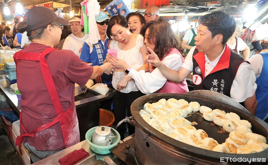 選戰進入最後倒數,國民黨高雄市長候選人韓國瑜的妻子李佳芬18日下午前往英明傳統市場掃街拜票,李佳芬逐一向攤商和民眾握手,希望能催出選票。市場內一間著名的「水煎包」攤販老闆也熱情地贈送給李佳芬,隨口大喊:「韓國瑜凍蒜,「包中...」啦,頓時間,也讓李佳芬與團隊感受到南台灣民眾的熱情。