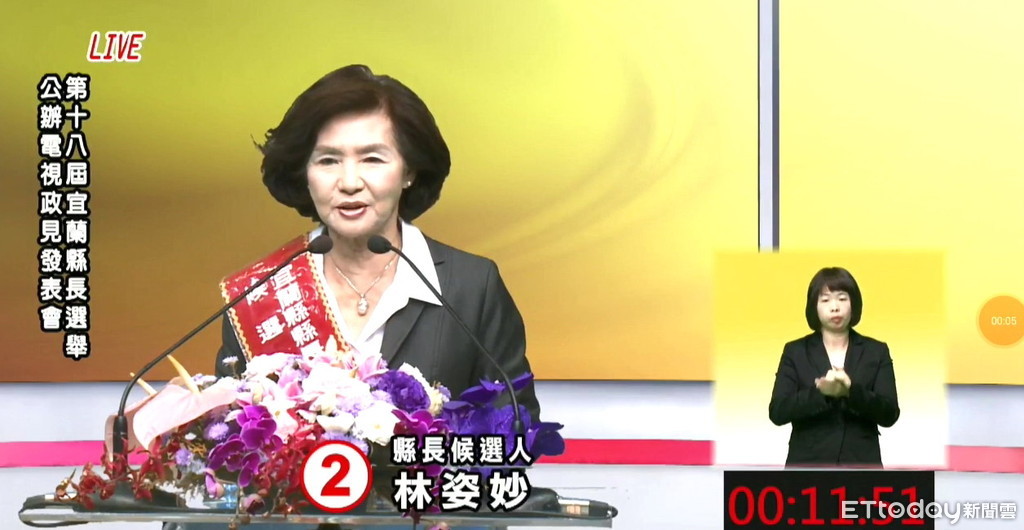 林姿妙在第2場宜蘭縣長選舉電視政見會第2輪發言說,陳立委7年來都沒顧百姓,用嘴來做建設,還要找她辯論,要用嘴講、大家都會講,立委7年來出國幾次要說清楚,當立委沒照顧卡車司機,淘汰老車那貸款還要怎辦,陳歐珀有在照顧百姓嗎,立委都沒做好怎麼當縣長。