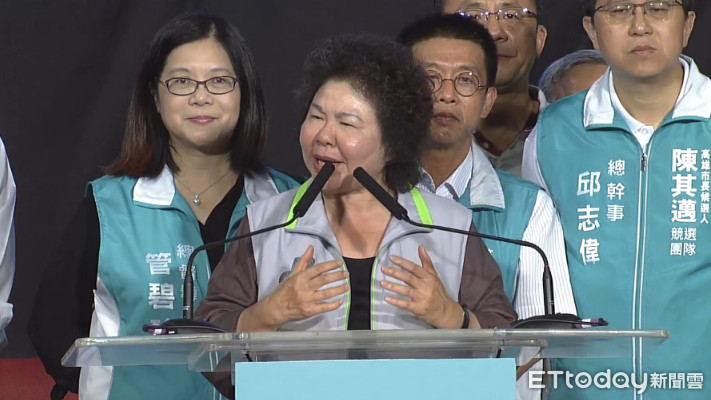 高雄市前市長陳菊來到岡山來幫陳其邁站台,不過前一天才遭到國民黨主席吳敦義影射「大母豬」,陳菊站到舞台上,表情相當堅毅,對底下的群眾說:「我不是大母豬,我是有尊嚴的台灣女兒,不要糟蹋我」。