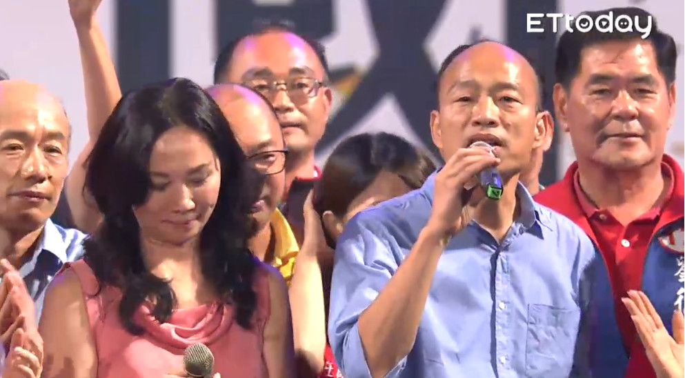 韓國瑜說,「終於我們的選舉可以擺脫悲情、沒有眼涙,用嘉年華會的歡欣鼓舞展現人民作主的力量。」