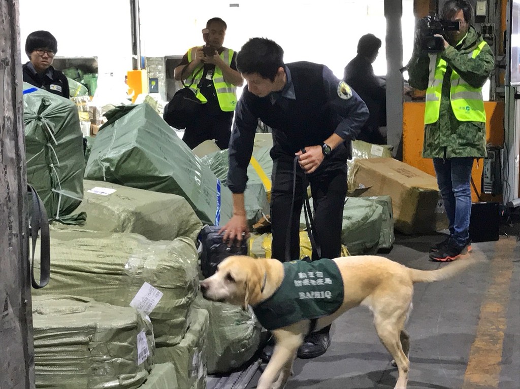 ▲檢疫犬偵測快遞貨物。(圖/農委會提供)