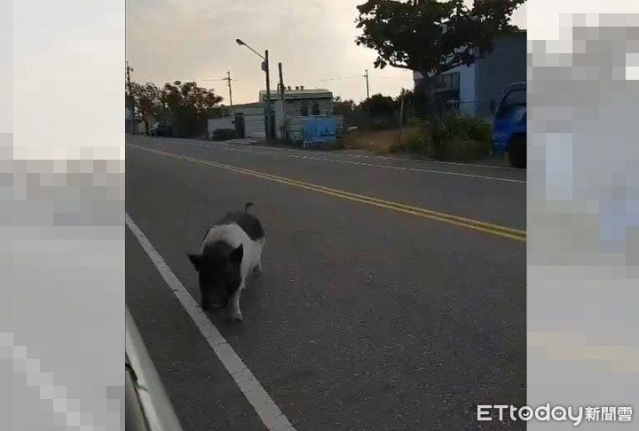 台南南區一頭被人飼養的黑白兩色豬隻,18日凌晨突然現身馬路閒逛,被路人發現後報案,警方到場發現是一頭體型相當龐大的麝香豬,當場傻眼,最後一名員警發現這頭豬會被警示燈吸引,於是一路「護送」到鯤鯓地區一處草地,並聯絡飼主帶回,平日正義凜然的警察居然成了「神豬護衛」。