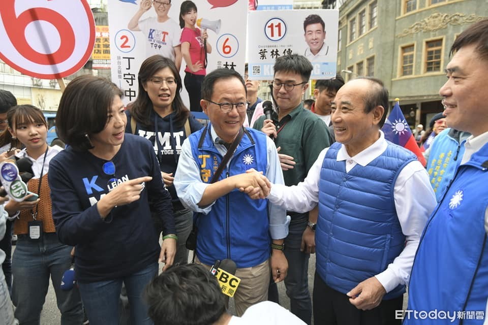 前行政院長王金平、前台北市長郝龍斌陪同台北市長候選人丁守中19日下午赴迪化街掃街,直搗綠營票倉,一行人也前往霞海城隍廟祈求高票當選,現場人潮十分擁擠,民眾紛紛搶合照。對於王金平特地從高雄北上陪掃街,丁守中表示,非常的感激、感恩、感謝。