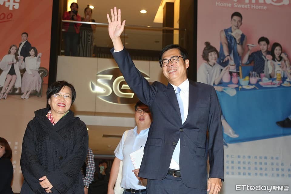 陳其邁團隊晚間則在立委趙天麟、劉世芳等人陪同下,於7時準時抵達會場,身穿一席深灰色西裝,打著淡藍色的領帶,髮型也有特別整理過。