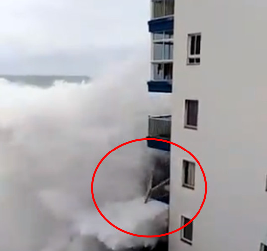 事發地點位在濱海梅薩區(Mesa del Mar),當地有許多度假屋。影片顯示,巨浪把3樓陽台應聲沖毀,而2樓的欄杆早已不見蹤影。