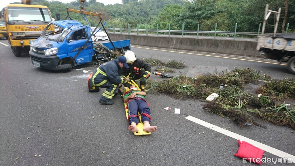 國道3號南下路段,嘉義梅山交流道至竹崎交流道間282.8公里南下處,20下午發生小貨車翻覆車禍意外,車上3名男性受困車內,車身變形嚴重,救出時意識清楚,被緊急送往嘉基醫院急救,詳細車禍原因交由國道警方調查。