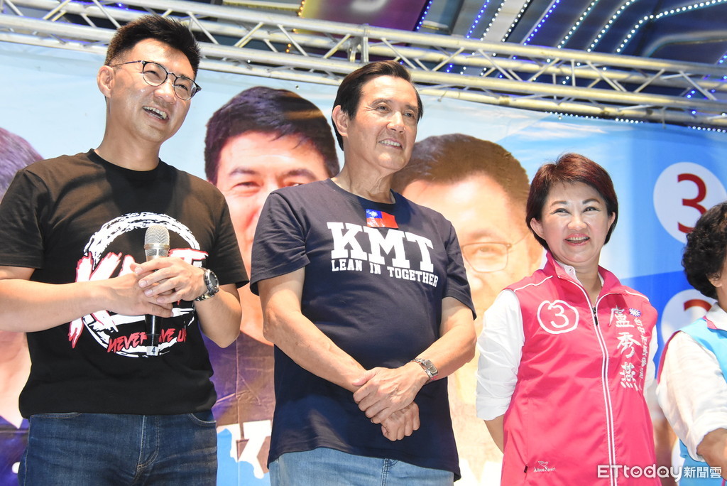 ▲馬英九與盧秀燕等人高舉雙手,象徵迎接勝利。(圖/記者李忠憲攝)