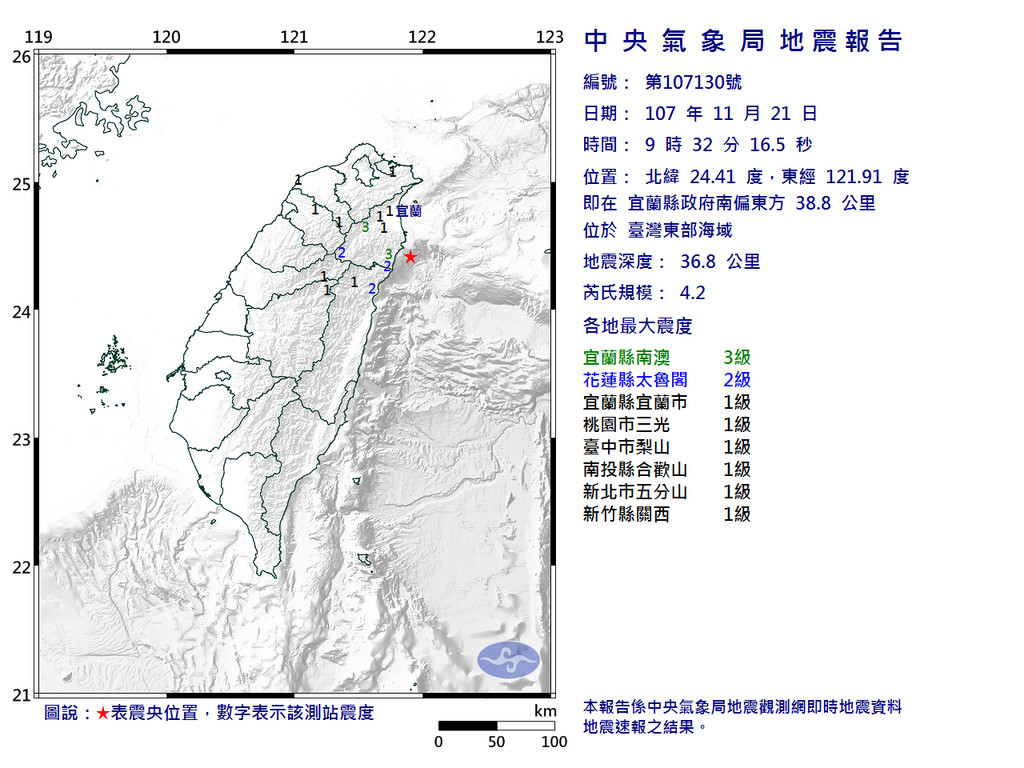 ▲宜蘭地震。(圖/翻攝自中央氣象局)