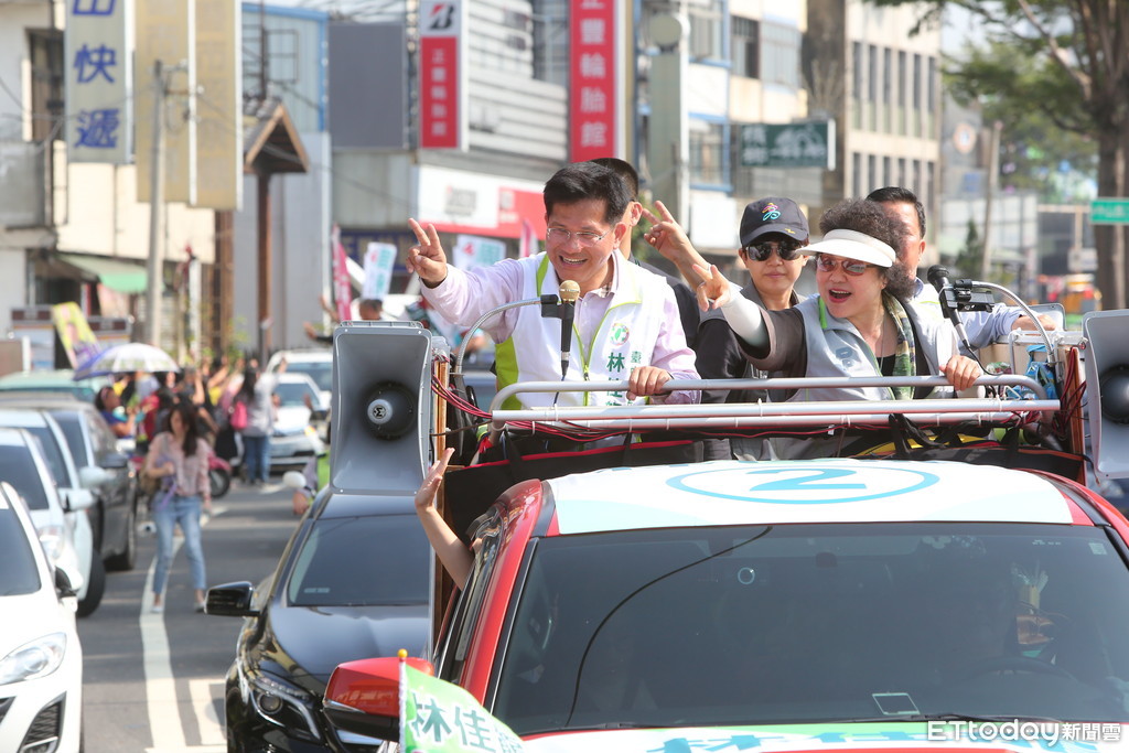 ▲陳菊與林佳龍合體,以車隊掃街拜票。(圖/記者李忠憲攝)