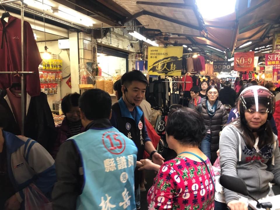 ▲縣議員候選人林岳賢市場掃街拜票。(圖/翻攝自林岳賢臉書)