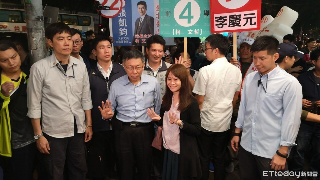 2018九合一選舉投票在即,台北市長選戰進入近身肉搏的拉鋸戰階段,各路候選人紛紛加足馬力掃街拜票,尋求連任的柯文哲21日晚間再度來到臨江街夜市拜票,由於逛街人潮眾多,為避免影響到民眾,柯營臨時改成在臨江夜市門口前排隊拍照。面對長長的排隊人龍,柯文哲化身人形立牌,面對粉絲要求來者不拒,氣氛熱絡。