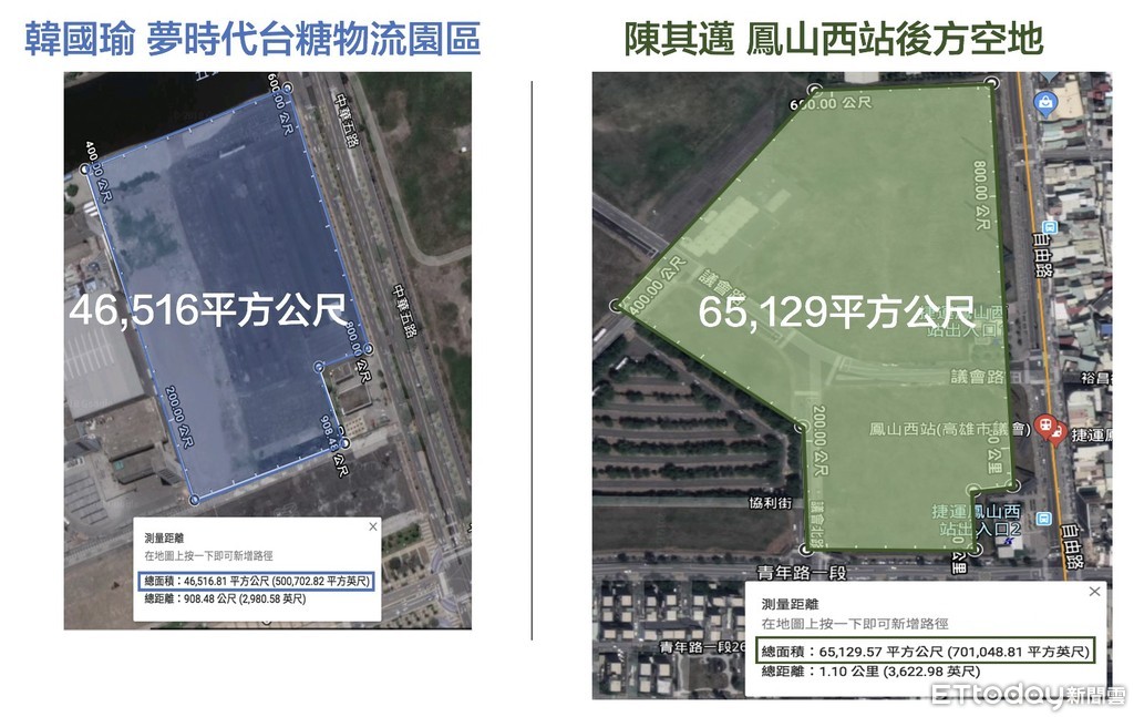 高雄市長選情選情激烈進入倒數,掀起各界關注!陳其邁競選總部宣布23日將在高捷鳳山西站後方舉辦「WeCARE 高雄」選前之夜,這次場地採取4年前陳菊市長競選連任時的勝選基地,並公布選前之夜的活動地點面積。陣營表示,這次面積有6萬5129平方公尺,以每平方公尺3人,本次場地可以容納20萬人,而對手韓國瑜在夢時代台糖物流園區選前之夜場地為4萬6516平方公尺,約可容納13萬人。