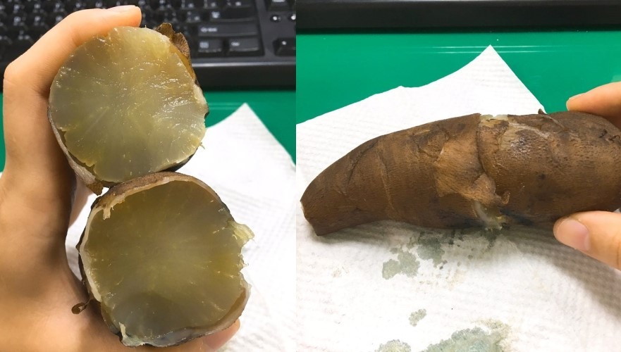 一位女網友在「爆怨公社」表示,早上在餐桌上看到2條地瓜,剛好拿來當早餐吃,「殊不知這是惡夢的開始」。原po說,地瓜扳開裡面像白蘿蔔,呈透明黃色狀,咬起來沒有地瓜的軟綿,口感也像白蘿蔔,「味道很詭異,吃到快吐了!」