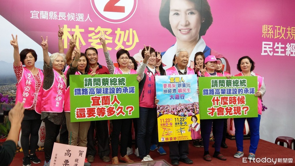 國民黨宜蘭縣長候選人林姿妙23日請鄉請一起站出來,向總統蔡英文高喊「宜蘭要鐵路高架、民進黨不要再跳票」。林姿妙競選總部表示,「要高架」辦童玩、拚經濟、顧民生、改變宜蘭大遊行,是要為宜蘭鄉親的需求,和鄉親一起向中央喊話:「我們不是二等公民,我們不要再等待了」。