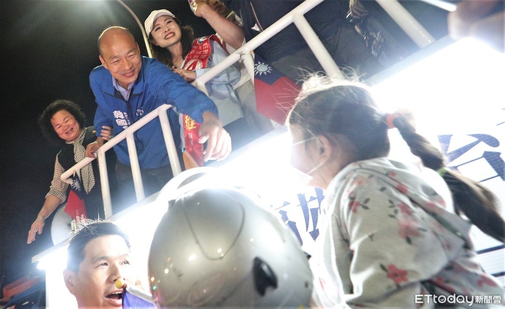 ▲▼韓國瑜競選車隊夜間掃街,支持者紛紛上前搶握手。(圖/記者宋德威攝)