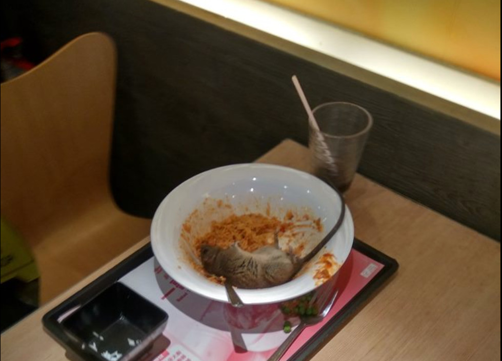 香港一間連鎖速食店顧客碗中竟有「巨鼠空降加菜」,嚇得餐桌前吃到一半的大媽尖叫連連。一名女網友立馬拍照,並且上傳至臉書群組「巴打絲打Facebook Club」。發文PO出後,引起許多網友熱議,更有網友戲稱「好新鮮阿」。