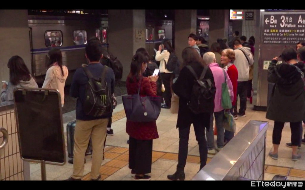 ▲台鐵南下月台下午逐漸出現返鄉人潮。(圖/記者黃軍瑋攝)