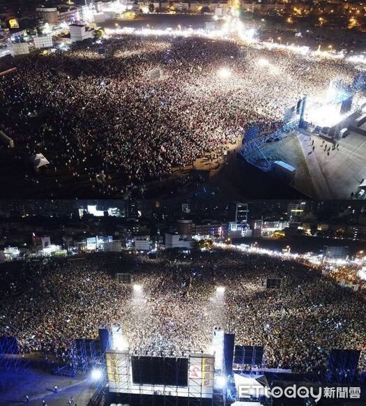 ▲透過空照圖顯示陳其邁造勢晚會周邊已經都擠滿人 。(圖/地方中心翻攝)