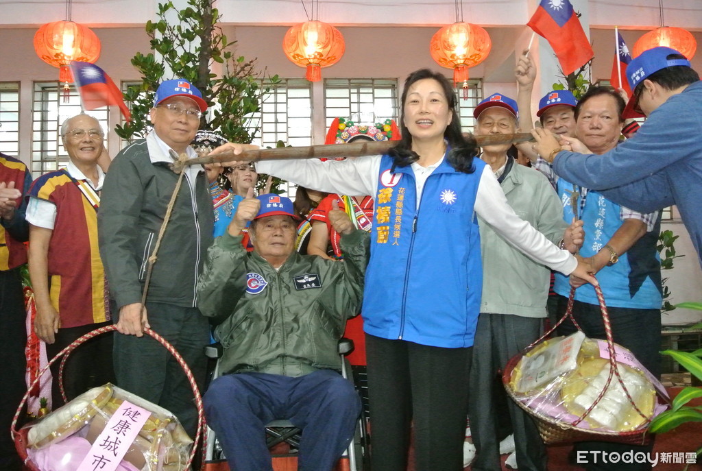 ▲徐榛蔚挑起扁擔,喊出「承擔」誓言。(圖/徐榛蔚服務處提供,下同)