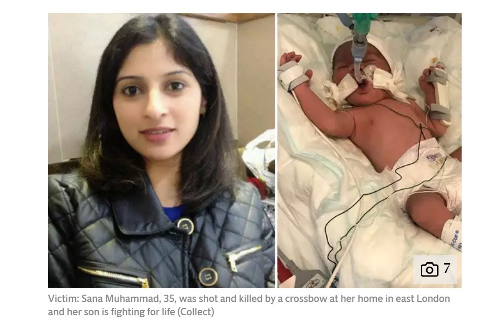 BBC報導, 12日一大早,35歲的莎娜在東倫敦地區的家中洗碗,老公伊提亞茲(Imtiaz Muhammad)當時正搬東西到車庫,看到嫌犯在家門口,作勢要拿箭攻擊,他趕緊跑進家中,邊喊著「趕快跑」,沒想到下一秒就看到莎娜被十字弓攻擊,但是已經來不及。莎娜腹部中傷,緊急送往醫院,但是3個小時之後,醫院宣布搶救無效身亡。