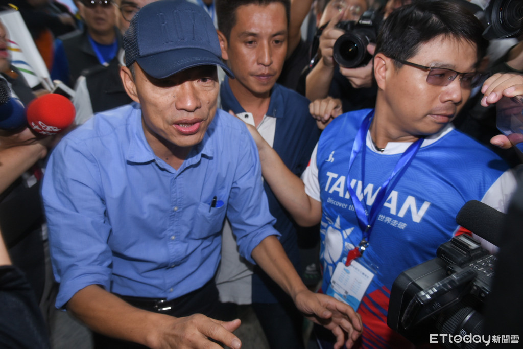 韓國瑜結束早上投票後,在下午3時許,戴著帽子在民眾的簇擁之下進入競選總部,現場也擠爆上千名「韓粉」,韓國瑜伴隨著選民歡呼進場,但韓國瑜相當低調,全程不發一語,僅要大家不要推擠。