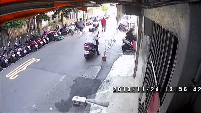 ▲畫面右側騎著銀色機車的騎士偷偷將一包垃圾丟在別人家牆角。(圖/翻攝自Facebook/爆料公社,下同)
