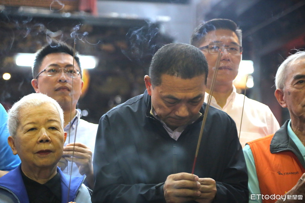 ▲侯友宜當選後第一個行程,前往新莊武聖廟、慈祐宮參拜。(圖/記者歐昶廷攝,下同)