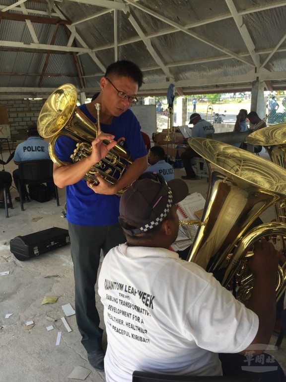 「對軍樂的教育與訓練而言,實在是相當難得的經驗。」今(107)年5至6月期間,示範樂隊副隊長陳皓霖少校與黃英師士官長奉令前往我邦交國吉里巴斯執行「軍樂外交」任務,協助整合訓練該國警察樂隊,以執行獨立紀念日慶典司樂工作及聯合操演。