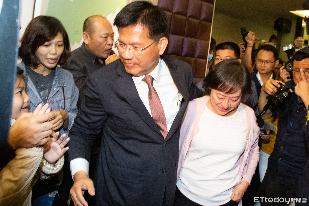 ▲台中市林佳龍由夫人廖婉如陪同,宣布敗選後離開競選總部。(圖/記者季相儒攝)